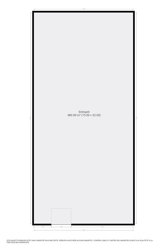 Dimension de l'entrepôt : largeur de +/- 15m, longueur de +/- 32m.